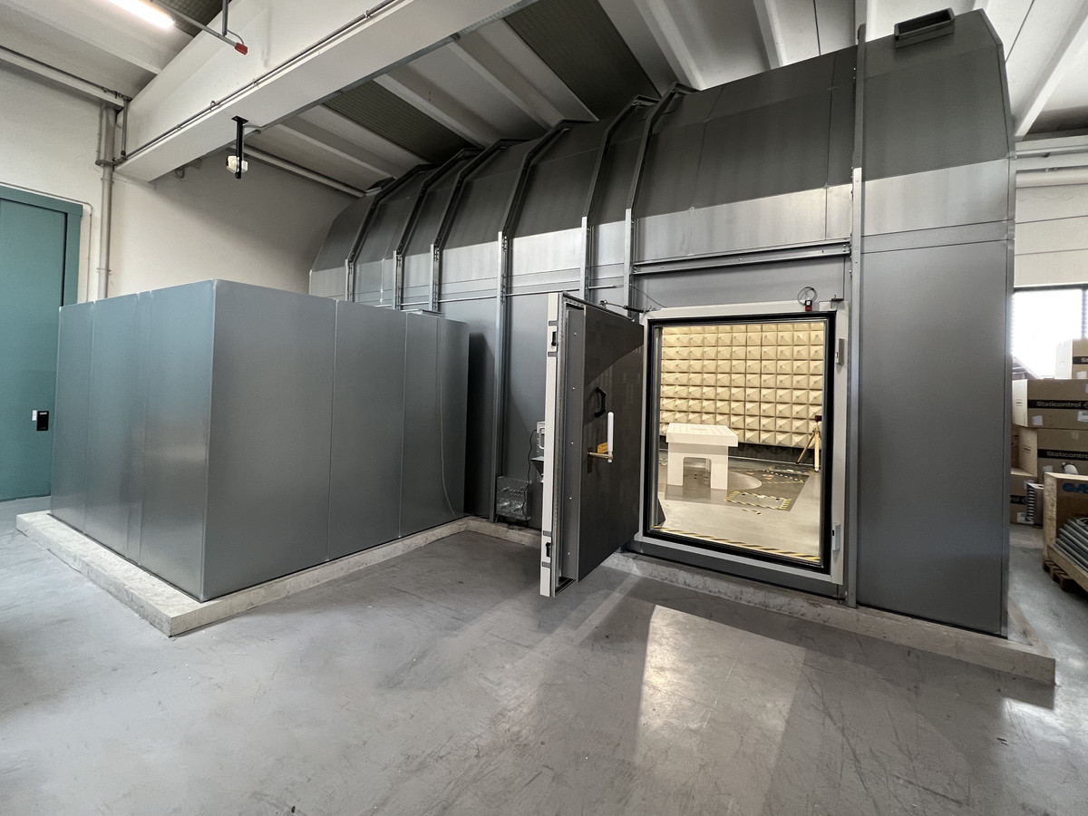 The installation of the anechoic chamber is part of a larger project, the goal of which is to obtain a certified in-house laboratory so as to internalize more and more tests that to date are done by external laboratories: Electro-magnetic compatibility (EMC) tests, Shock and Vibe mechanical tests, environmental tests, IP tests, dust etc.